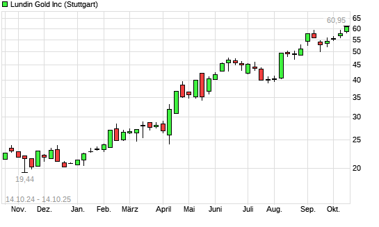 Mit dem Anstieg auf 59,50 EUR hat die Lundin Gold-Aktie (ISIN CA5503711080) am 13.10.2025 ein neues All-Time-High erreicht und damit den Kurs vom 08.09.2025 eingestellt.Die Lundin Gold-Aktie ...weiterlesen