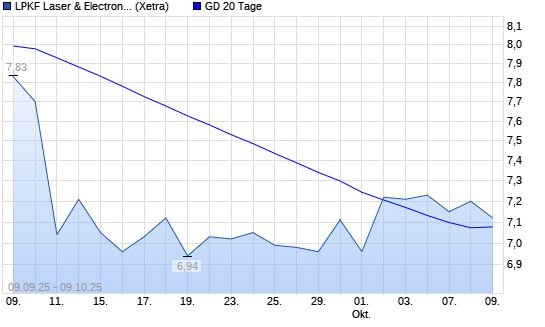 Mit dem Rücksetzer auf 7,08 EUR hat die LPKF Laser-Aktie am 08.10.2025 die 20-Tage-Linie nach unten gekreuzt.Die LPKF Laser-Aktie befindet sich seit dem 24.07.2025 im langfristigen Abwärtstrend ...weiterlesen