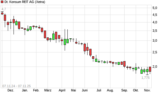 Mit dem Rücksetzer auf 1,70 EUR hat die Deutsche Konsum REIT-Aktie (ISIN DE000A14KRD3) am 06.11.2025 ein neues All-Time-Low erreicht und damit den Kurs vom 28.10.2025 eingestellt.Die Deutsche ...weiterlesen