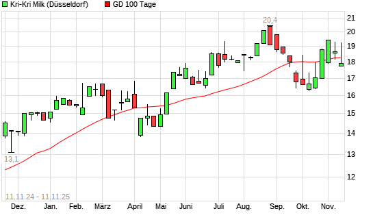 Mit dem Anstieg auf 18,70 EUR hat die Kri-Kri Milk-Aktie am 10.11.2025 die 100-Tage-Linie nach oben gekreuzt.Die Kri-Kri Milk-Aktie befindet sich seit dem 21.10.2025 im langfristigen Aufwärtstrend ...weiterlesen