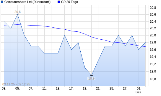 Mit dem Rücksetzer auf 19,50 EUR hat die Computershare-Aktie am 01.12.2025 die 20-Tage-Linie nach unten gekreuzt.Die Computershare-Aktie befindet sich seit dem 19.08.2025 im langfristigen ...weiterlesen