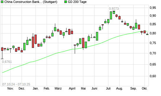 Mit dem Rücksetzer auf 0,80 EUR hat die China Construction Bank-Aktie am 06.10.2025 die 200-Tage-Linie nach unten gekreuzt.Die China Construction Bank-Aktie befand sich seit dem 29.09.2025 ...weiterlesen