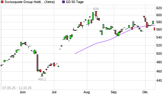 Mit dem Rücksetzer auf 560,50 EUR hat die Swissquote Group-Aktie am 10.10.2025 die 50-Tage-Linie nach unten gekreuzt.Der Abstand zur 200-Tage-Linie beträgt aktuell +16,61%. ...weiterlesen