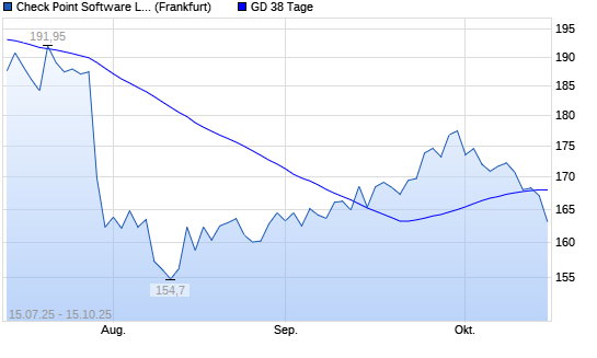 Mit dem Rücksetzer auf 167,10 EUR hat die Check Point Software-Aktie am 14.10.2025 die 38-Tage-Linie nach unten gekreuzt.Die Check Point Software-Aktie befindet sich seit dem 23.07.2025 ...weiterlesen