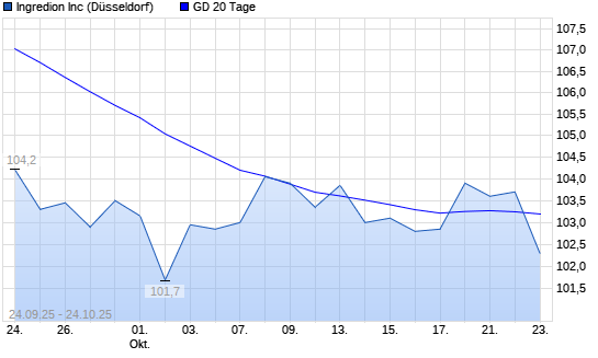 Mit dem Anstieg auf 102,95 EUR hat die Ingredion-Aktie am 23.10.2025 die 20-Tage-Linie nach oben gekreuzt.Die Ingredion-Aktie befindet sich seit dem 03.04.2025 im langfristigen Abwärtstrend ...weiterlesen