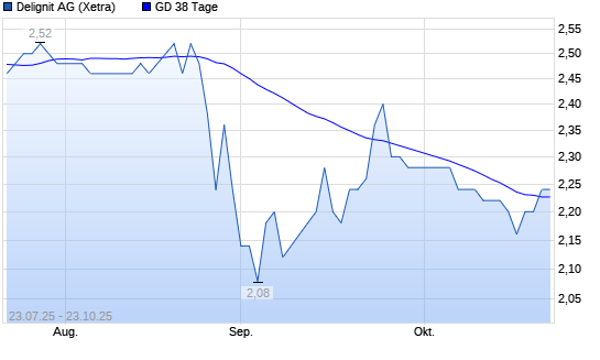Mit dem Rücksetzer auf 2,18 EUR hat die Delignit-Aktie am 22.10.2025 die 38-Tage-Linie nach unten gekreuzt.Die Delignit-Aktie befindet sich seit dem 26.08.2025 im langfristigen Abwärtstrend ...weiterlesen