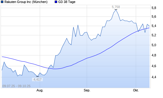 Mit dem Anstieg auf 5,44 EUR hat die Rakuten-Aktie am 08.10.2025 die 38-Tage-Linie nach oben gekreuzt.Die Rakuten-Aktie befindet sich seit dem 10.09.2025 im langfristigen Aufwärtstrend und hat ...weiterlesen