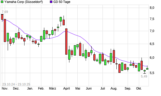 Mit dem Anstieg auf 5,74 EUR hat die Yamaha-Aktie am 22.10.2025 die 50-Tage-Linie nach oben gekreuzt.Die Yamaha-Aktie befindet sich seit dem 03.04.2025 im langfristigen Abwärtstrend und hat ...weiterlesen