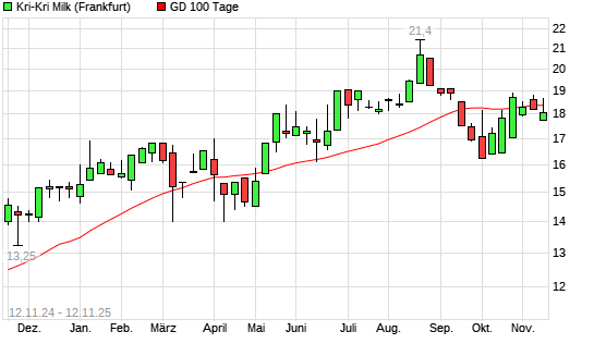 Mit dem Rücksetzer auf 17,94 EUR hat die Kri-Kri Milk-Aktie am 11.11.2025 die 100-Tage-Linie nach unten gekreuzt.Die Kri-Kri Milk-Aktie befindet sich seit dem 21.10.2025 im langfristigen ...weiterlesen
