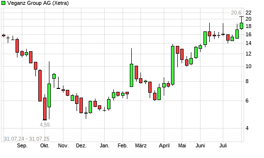 Mit dem Anstieg auf 19,95 EUR hat die Veganz Group-Aktie (ISIN DE000A3E5ED2) am 30.07.2025 ein neues 12-Monats-Hoch erreicht und damit den Kurs vom 28.07.2025 eingestellt.Die Veganz Group-Aktie ...weiterlesen