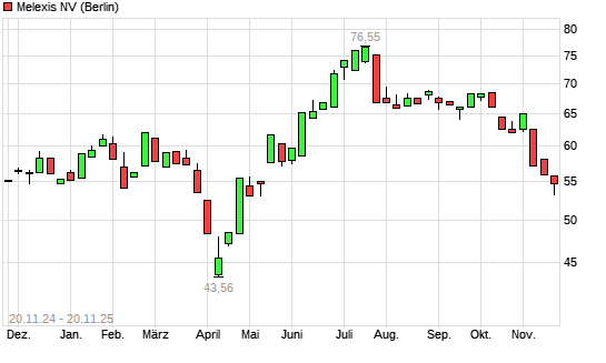 Mit dem Rücksetzer auf 53,10 EUR hat die Melexis-Aktie (ISIN BE0165385973) am 19.11.2025 ein neues 6-Monats-Tief erreicht und damit den Kurs vom 18.11.2025 eingestellt.Die Melexis-Aktie ...weiterlesen
