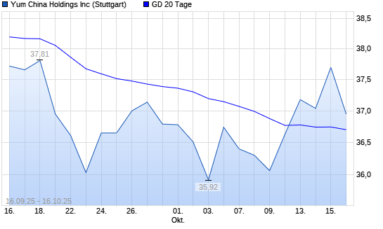Mit dem Anstieg auf 37,26 EUR hat die Yum China Holdings-Aktie am 15.10.2025 die 20-Tage-Linie nach oben gekreuzt.Die Yum China Holdings-Aktie befindet sich seit dem 16.05.2025 im langfristigen ...weiterlesen