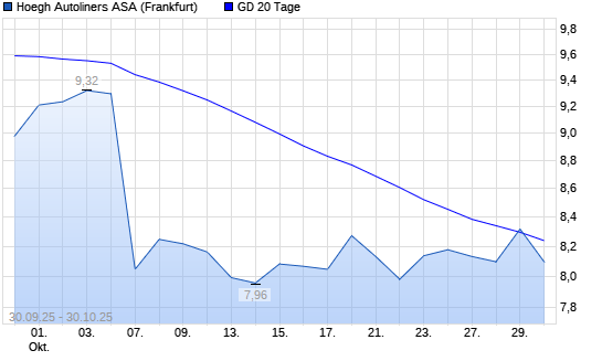 Mit dem Anstieg auf 8,32 EUR hat die Hoegh Autoliners ASA-Aktie am 29.10.2025 die 20-Tage-Linie nach oben gekreuzt.Die Hoegh Autoliners ASA-Aktie befindet sich seit dem 23.10.2025 im langfristigen ...weiterlesen
