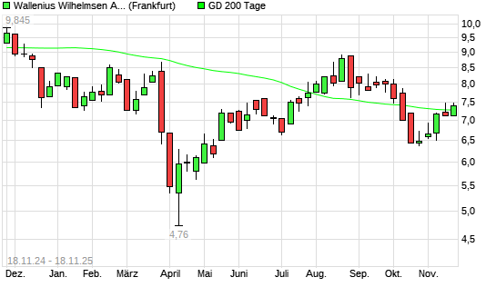 Mit dem Anstieg auf 7,40 EUR hat die Wallenius Wilhelmsen-Aktie am 17.11.2025 die 200-Tage-Linie nach oben gekreuzt.Die Wallenius Wilhelmsen-Aktie befand sich seit dem 13.11.2025 im langfristigen ...weiterlesen