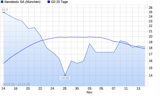 Mit dem Anstieg auf 18,00 EUR hat die Nanobiotix Ord Shs-Aktie am 13.11.2025 die 20-Tage-Linie nach oben gekreuzt.Die Nanobiotix Ord Shs-Aktie befindet sich seit dem 28.05.2025 im langfristigen ...weiterlesen