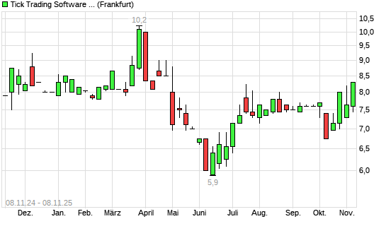 Mit dem Anstieg auf 8,30 EUR hat die Tick Trading Software-Aktie (ISIN DE000A35JS99) am 07.11.2025 ein neues 6-Monats-Hoch erreicht und damit den Kurs vom 16.07.2025 eingestellt.Die Tick Trading ...weiterlesen