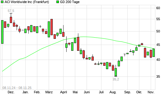 Mit dem Anstieg auf 43,60 EUR hat die ACI Worldwide-Aktie am 07.11.2025 die 200-Tage-Linie nach oben gekreuzt.Die ACI Worldwide-Aktie befand sich seit dem 13.10.2025 im langfristigen Aufwärtstrend ...weiterlesen