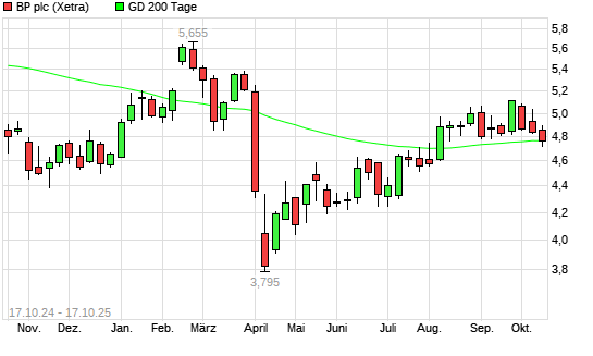 Mit dem Rücksetzer auf 4,75 EUR hat die BP-Aktie am 16.10.2025 die 200-Tage-Linie nach unten gekreuzt.Die BP-Aktie befand sich seit dem 15.10.2025 im langfristigen Aufwärtstrend und hat ...weiterlesen
