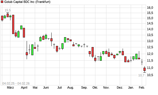 Mit dem Rücksetzer auf 10,70 EUR hat die GOLUB CAPITAL BDC-Aktie (ISIN US38173M1027) am 03.02.2026 ein neues 5-Jahres-Tief erreicht und damit den Kurs vom 02.02.2026 eingestellt.Die GOLUB ...weiterlesen