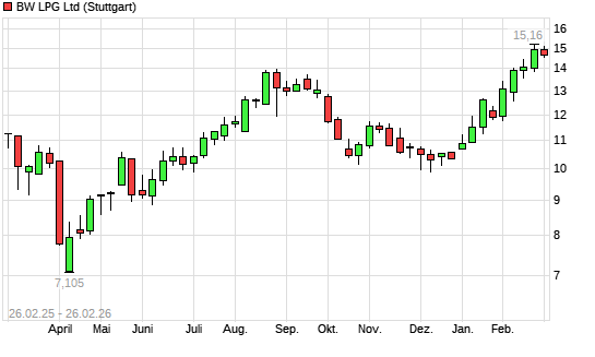 Mit dem Anstieg auf 14,85 EUR hat die BW LPG-Aktie (ISIN SGXZ69436764) am 25.02.2026 ein neues 12-Monats-Hoch erreicht und damit den Kurs vom 23.02.2026 eingestellt.Die BW ...weiterlesen