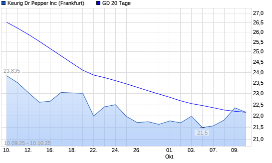Mit dem Anstieg auf 22,36 EUR hat die Keurig Dr Pepper-Aktie am 09.10.2025 die 20-Tage-Linie nach oben gekreuzt.Die Keurig Dr Pepper-Aktie befindet sich seit dem 22.08.2025 im langfristigen ...weiterlesen