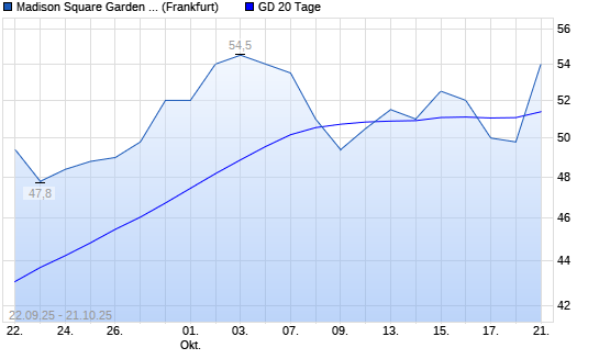 Mit dem Anstieg auf 54,00 EUR hat die Madison Square Garden Entertainment Corp.-Aktie am 20.10.2025 die 20-Tage-Linie nach oben gekreuzt.Die Madison Square Garden Entertainment Corp.-Aktie befindet ...weiterlesen