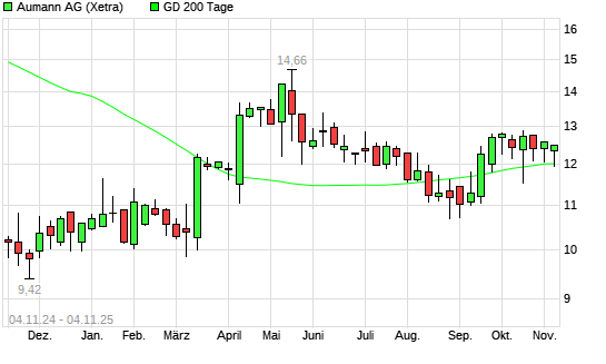 Mit dem Anstieg auf 12,00 EUR hat die Aumann-Aktie am 03.11.2025 die 200-Tage-Linie nach oben gekreuzt.Die Aumann-Aktie befand sich seit dem 31.10.2025 im langfristigen Abwärtstrend und hat ...weiterlesen