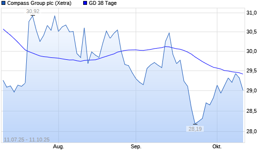 Mit dem Rücksetzer auf 29,29 EUR hat die Compass Group-Aktie am 10.10.2025 die 38-Tage-Linie nach unten gekreuzt.Die Compass Group-Aktie befindet sich seit dem 25.07.2025 im langfristigen ...weiterlesen