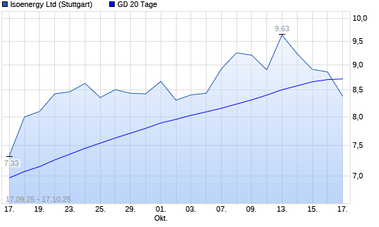 Mit dem Rücksetzer auf 8,63 EUR hat die Isoenergy-Aktie am 16.10.2025 die 20-Tage-Linie nach unten gekreuzt.Die Isoenergy-Aktie befindet sich seit dem 26.08.2025 im langfristigen Aufwärtstrend ...weiterlesen