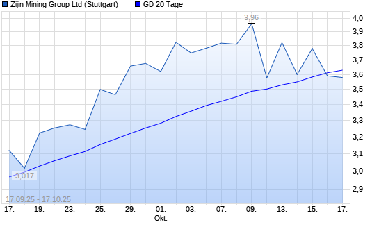Mit dem Rücksetzer auf 3,55 EUR hat die Zijin Mining-Aktie am 16.10.2025 die 20-Tage-Linie nach unten gekreuzt.Die Zijin Mining-Aktie befindet sich seit dem 14.04.2025 im langfristigen ...weiterlesen