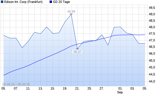 Mit dem Rücksetzer auf 46,77 EUR hat die Edison International-Aktie am 04.09.2025 die 20-Tage-Linie nach unten gekreuzt.Die Edison International-Aktie befindet sich seit dem 08.01.2025 ...weiterlesen