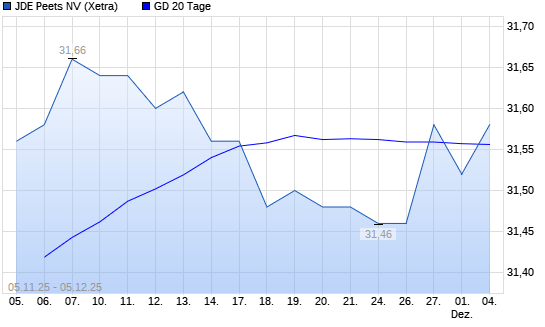 Mit dem Anstieg auf 31,58 EUR hat die JDE Peets-Aktie am 04.12.2025 die 20-Tage-Linie nach oben gekreuzt.Die JDE Peets-Aktie befindet sich seit dem 19.03.2025 im langfristigen Aufwärtstrend ...weiterlesen