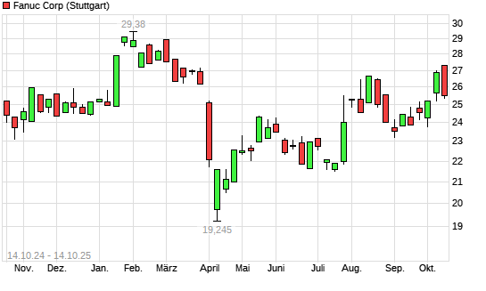 Mit dem Anstieg auf 26,60 EUR hat die Fanuc-Aktie (ISIN JP3802400006) am 13.10.2025 ein neues 6-Monats-Hoch erreicht und damit den Kurs vom 15.08.2025 eingestellt.Die Fanuc-Aktie befindet sich ...weiterlesen