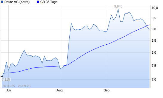 Mit dem Rücksetzer auf 9,15 EUR hat die Deutz-Aktie am 25.09.2025 die 38-Tage-Linie nach unten gekreuzt.Die Deutz-Aktie befindet sich seit dem 11.02.2025 im langfristigen Aufwärtstrend ...weiterlesen