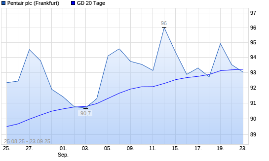 Mit dem Rücksetzer auf 92,30 EUR hat die Pentair-Aktie am 22.09.2025 die 20-Tage-Linie nach unten gekreuzt.Die Pentair-Aktie befindet sich seit dem 13.08.2025 im langfristigen Aufwärtstrend ...weiterlesen
