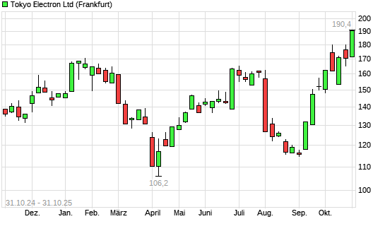 Mit dem Anstieg auf 186,05 EUR hat die Tokyo Electron-Aktie (ISIN JP3571400005) am 30.10.2025 ein neues 12-Monats-Hoch erreicht und damit den Kurs vom 29.10.2025 eingestellt.Die Tokyo Electron-Aktie ...weiterlesen