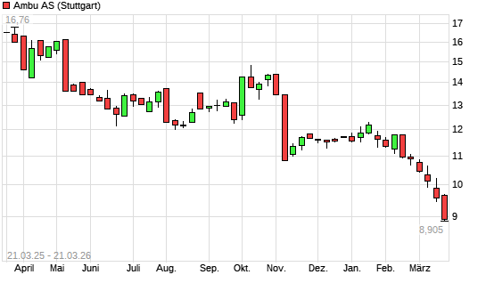 Mit dem Rücksetzer auf 9,06 EUR hat die Ambu A/S-Aktie (ISIN DK0060946788) am 20.03.2026 ein neues 12-Monats-Tief erreicht und damit den Kurs vom 19.03.2026 eingestellt.Die ...weiterlesen