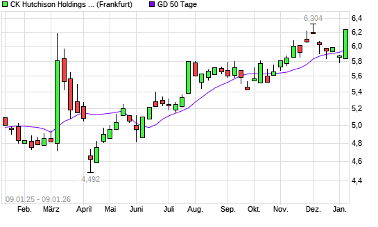 Mit dem Anstieg auf 6,01 EUR hat die CK Hutchison Holdings-Aktie am 08.01.2026 die 50-Tage-Linie nach oben gekreuzt.Die CK Hutchison Holdings-Aktie befindet sich seit dem 03.06.2025 ...weiterlesen