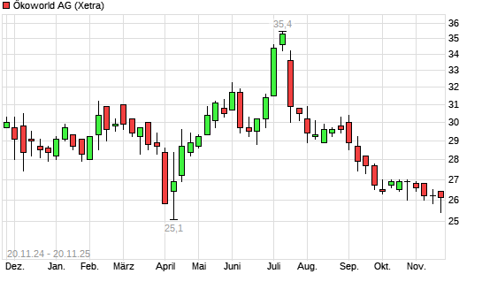 Mit dem Rücksetzer auf 25,20 EUR hat die Ökoworld-Aktie (ISIN DE0005408686) am 19.11.2025 ein neues 6-Monats-Tief erreicht und damit den Kurs vom 18.11.2025 eingestellt.Die Ökoworld-Aktie ...weiterlesen