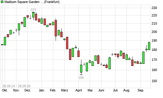 Mit dem Anstieg auf 189,00 EUR hat die Madison Square Garden Sports A-Aktie (ISIN US55825T1034) am 25.09.2025 ein neues 6-Monats-Hoch erreicht und damit den Kurs vom 25.03.2025 eingestellt.Die ...weiterlesen