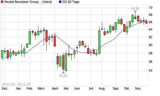Mit dem Rücksetzer auf 65,90 EUR hat die Reckitt Benckiser-Aktie am 19.11.2025 die 50-Tage-Linie nach unten gekreuzt.Die Reckitt Benckiser-Aktie befindet sich seit dem 24.07.2025 im langfristigen ...weiterlesen
