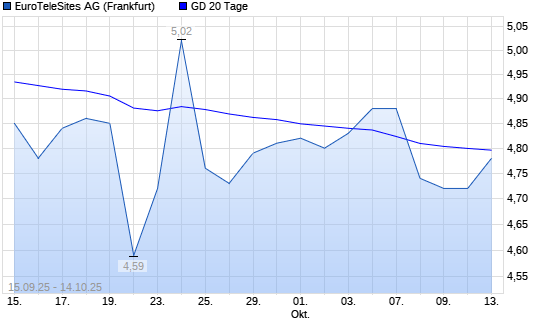 Mit dem Rücksetzer auf 4,77 EUR hat die EuroTeleSites AG-Aktie am 13.10.2025 die 20-Tage-Linie nach unten gekreuzt.Die EuroTeleSites AG-Aktie befindet sich seit dem 08.09.2025 im langfristigen ...weiterlesen