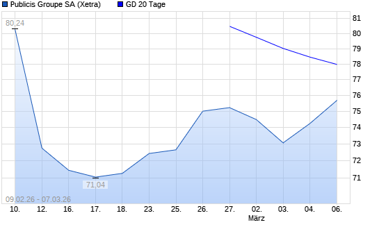 Mit dem Anstieg auf 76,00 EUR hat die Publicis Groupe-Aktie am 06.03.2026 die 20-Tage-Linie nach oben gekreuzt.Die Publicis Groupe-Aktie befindet sich seit dem 03.02.2026 im ...weiterlesen
