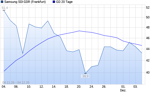 Mit dem Rücksetzer auf 44,40 EUR hat die Samsung SDI-Aktie am 03.12.2025 die 20-Tage-Linie nach unten gekreuzt.Die Samsung SDI-Aktie befindet sich seit dem 14.10.2025 im langfristigen Aufwärtstrend ...weiterlesen