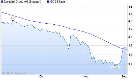 Mit dem Anstieg auf 3,69 EUR hat die Zumtobel-Aktie am 01.12.2025 die 38-Tage-Linie nach oben gekreuzt.Die Zumtobel-Aktie befindet sich seit dem 18.07.2025 im langfristigen Abwärtstrend und ...weiterlesen
