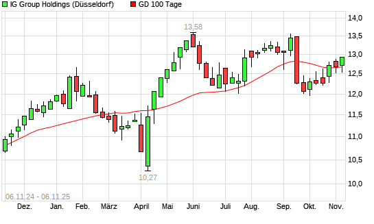 Mit dem Rücksetzer auf 12,65 EUR hat die IG GROUP HOLDINGS-Aktie am 05.11.2025 die 100-Tage-Linie nach unten gekreuzt.Die IG GROUP HOLDINGS-Aktie befindet sich seit dem 23.10.2025 im langfristigen ...weiterlesen