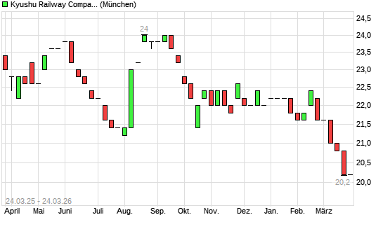 Mit dem Rücksetzer auf 19,90 EUR hat die Kyushu Railway Company-Aktie (ISIN JP3247010006) am 23.03.2026 ein neues 12-Monats-Tief erreicht und damit den Kurs vom ...weiterlesen