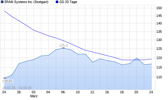 Mit dem Rücksetzer auf 116,40 EUR hat die EPAM Systems-Aktie am 23.03.2026 die 20-Tage-Linie nach unten gekreuzt.Die EPAM Systems-Aktie befindet sich seit dem 11.02.2026 ...weiterlesen