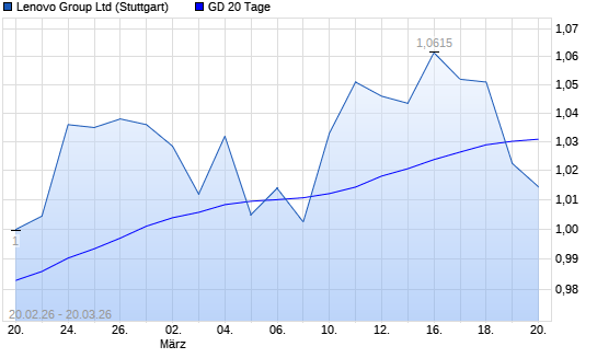 Mit dem Rücksetzer auf 1,03 EUR hat die Lenovo Group-Aktie am 19.03.2026 die 20-Tage-Linie nach unten gekreuzt.Die Lenovo Group-Aktie befindet sich seit dem 14.11.2025 ...weiterlesen