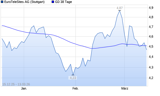 Mit dem Anstieg auf 4,54 EUR hat die EuroTeleSites AG-Aktie am 12.03.2026 die 38-Tage-Linie nach oben gekreuzt.Die EuroTeleSites AG-Aktie befindet sich seit dem 02.03.2026 im ...weiterlesen